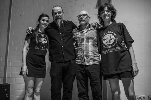 „Not that it was unexpected, but a festival as diverse and consistently impressive as this year's Visual Sound Outdoor Festival in Dortmund's Parzelle deserves explicit praise. Angelika Hoffmann's curatorial and conceptual philosophy is characterized by symbolic contrasts that ultimately subvert any clichéd expectations. When Hans Peter Hiby and Camila Nebbia stand side by side and make their saxophones glow, for example, this alone may initially trigger a few stereotypes: the old, masculine warhorse and the young, ambitious power woman. However, there was no trace of animus and anima, no yin and yang, but rather, if you will, gender mainstreaming, and not only because Hiby mostly uses an alto saxophone, while Nebbia uses a tenor saxophone, which in itself runs counter to the cliché. Two exceptional talents on equal footing, each with their own style and individual phrasing, of course, but no trace of old vs. young, man vs. woman, just expressiveness and dedication. The two are framed by the masterful Paul Hession on drums and the young cellist Julia Bilat, the latter initially reserved, almost shy, but then erupting at just the right moment and feeding into the collective high-energy flow. Brötz was in the house! What a spectacle!“